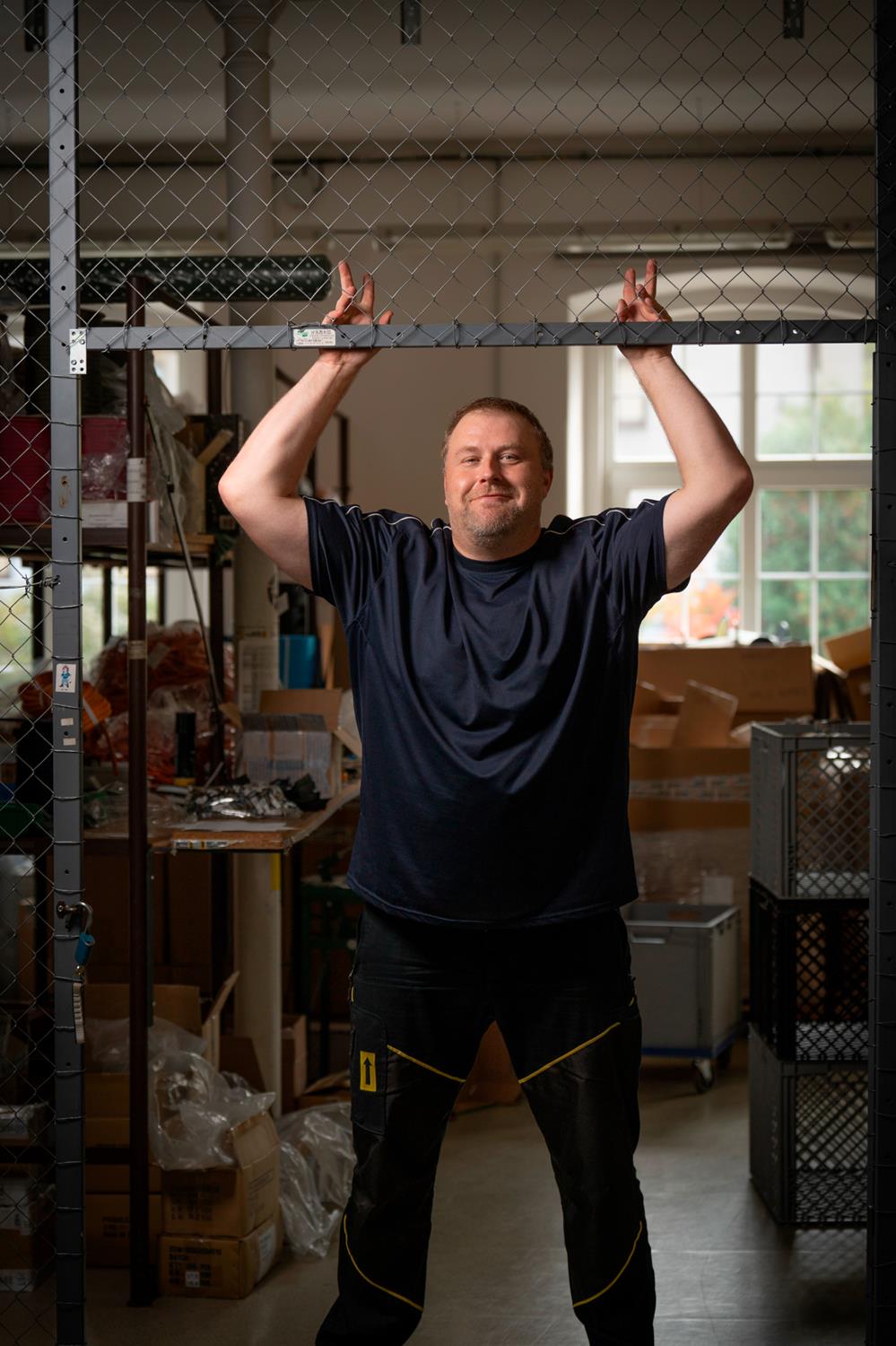 Jirka je motor, co nikdy nevypne. V Singáči je už asi 20 let. Dlouho dělal na skladu hotových výrobků a teď je na skladu materiálu. Spolehlivý, pevný jako skála a maká na plný plyn. Když chceš mít něco hotový, zavolej Lebrušku a máš to bez stresu.