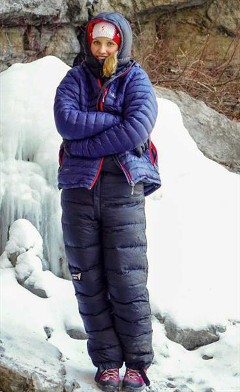Nejtěžsí pro mě byl boj se zimou, z -15 ráno se „oteplilo“ na -10. Měla jsem pocit, že necítím nejen ruce a nohy, ale snad i celé tělo. Spodní led jsem lezla v teplejších rukavicích a při přelezu do mixové části jsem si rukavičky přehodila za golfové. Naštěstí výměna proběhla bez ztráty rovnováhy a já mohla pokračovat vzhůru touhle 40 metrovou cestou.
