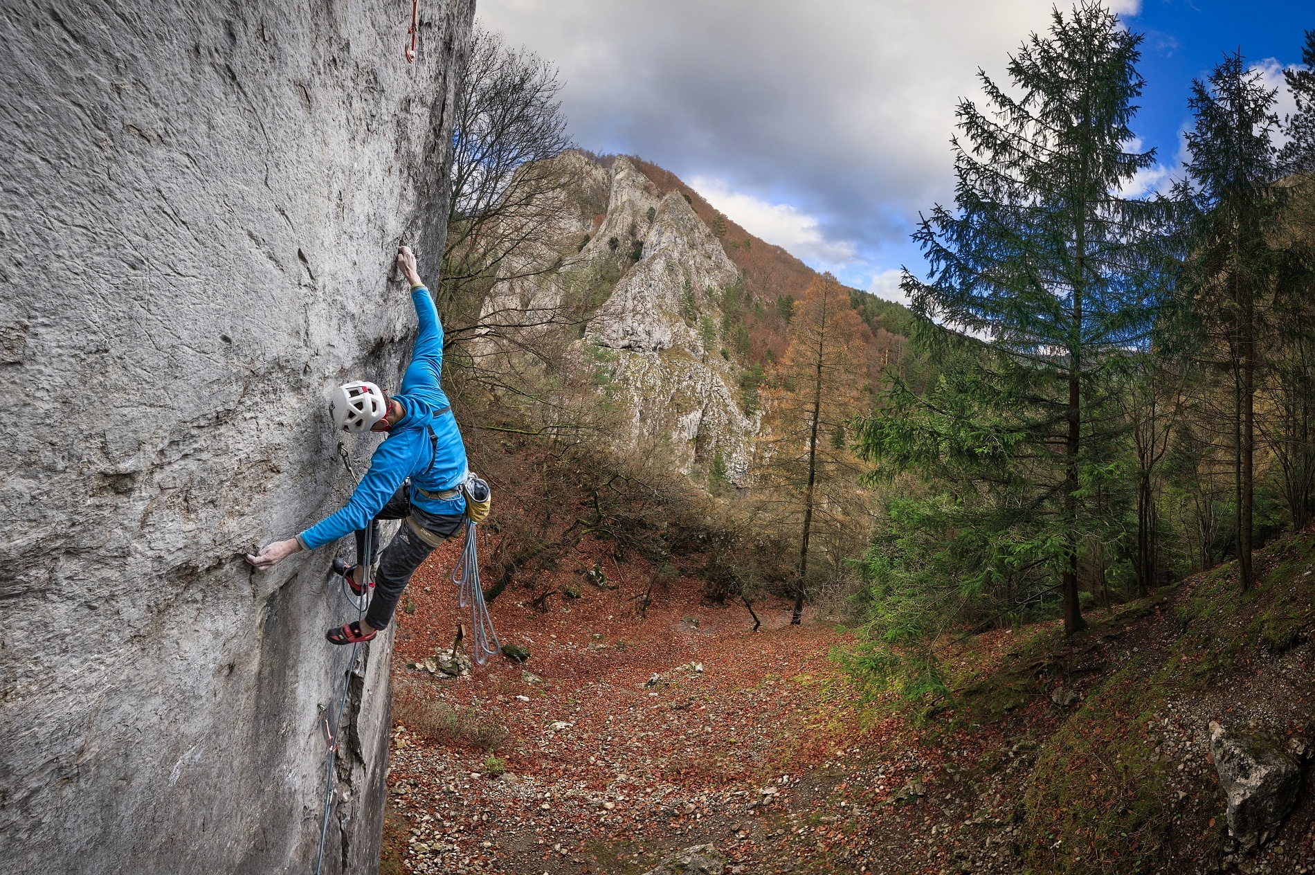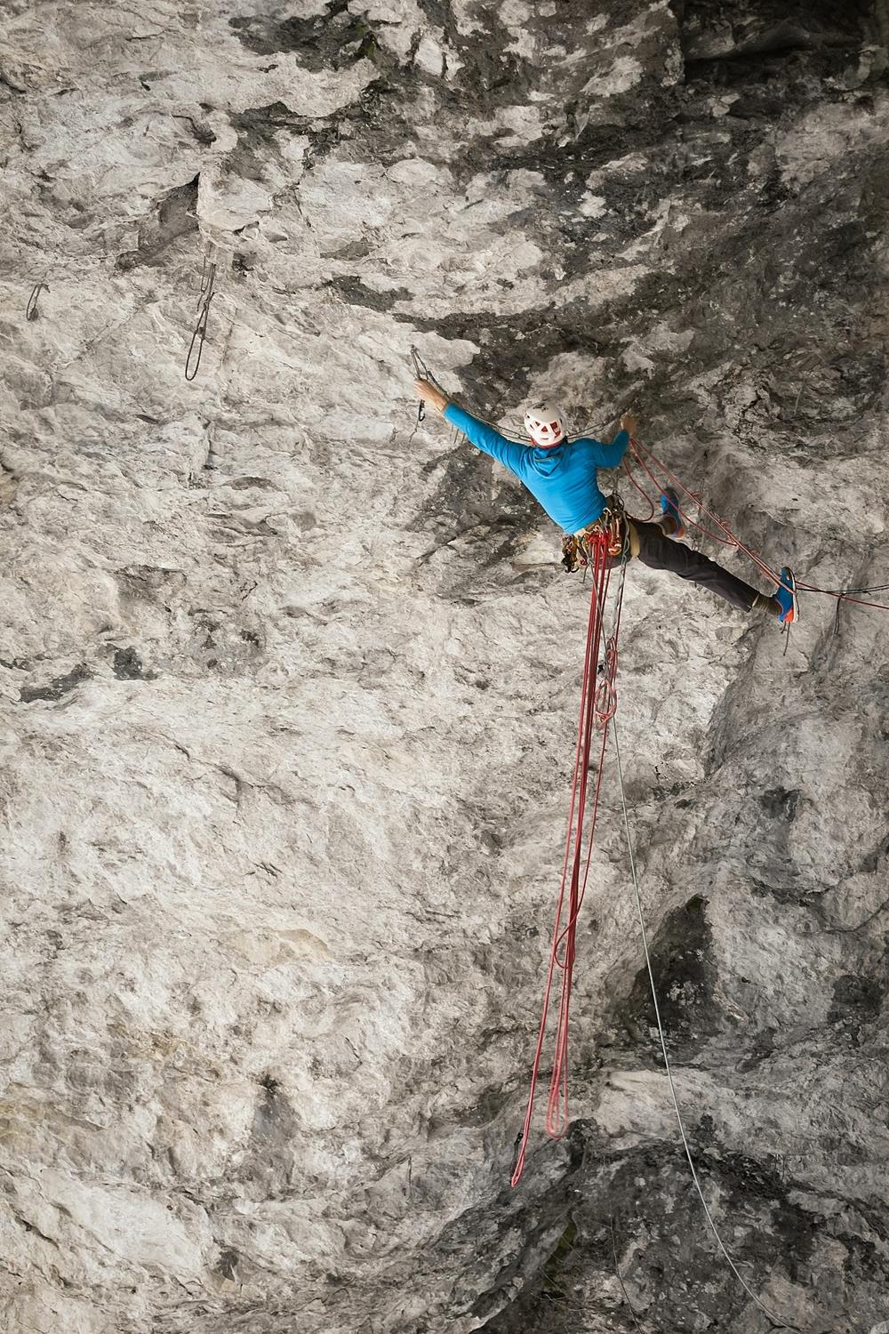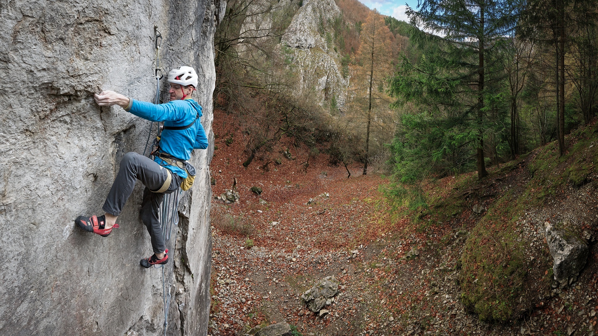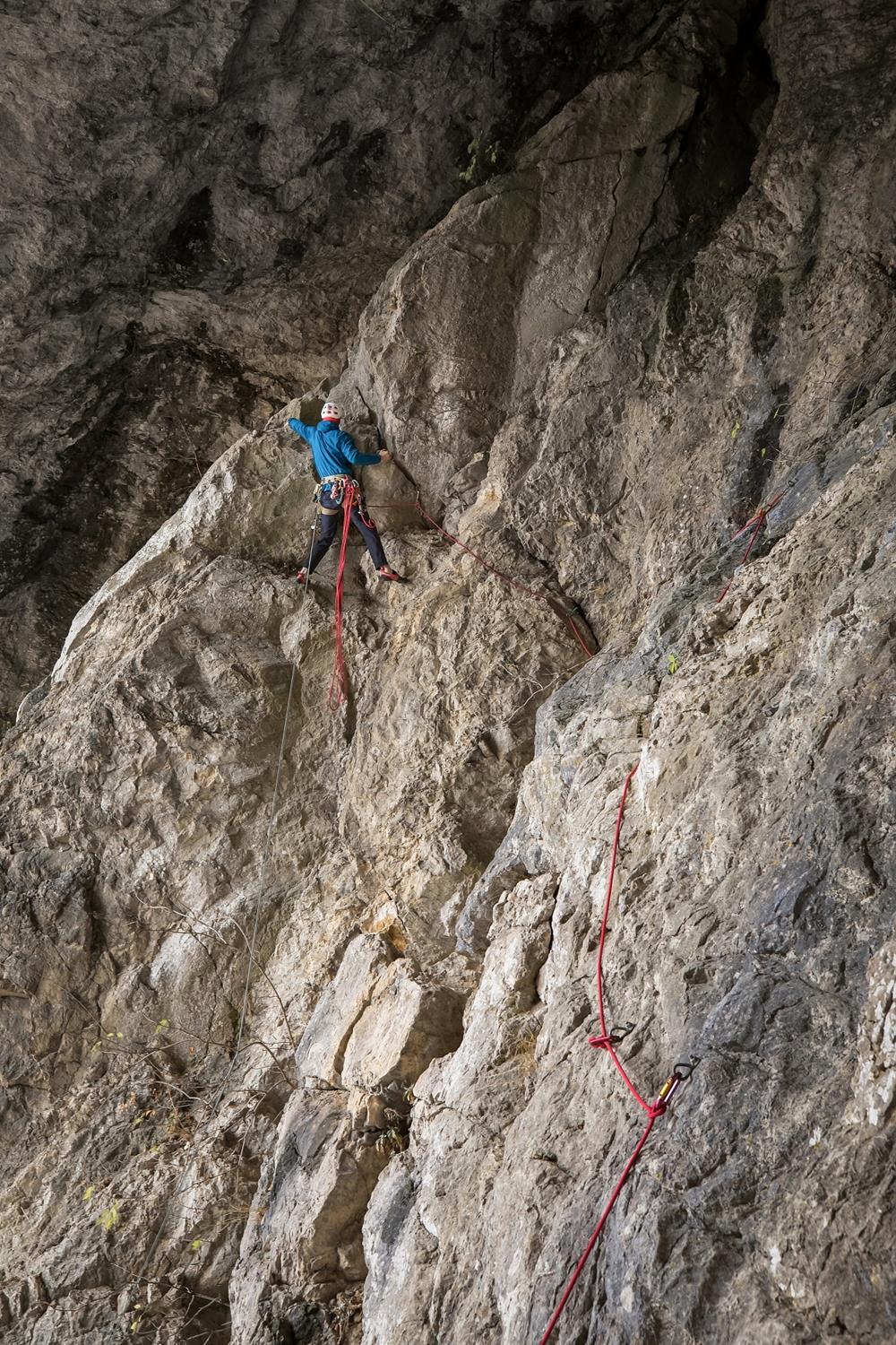 Střih. První skály po úrazu byl průlez Kežmaráku na druhém, ale jen díky nástupu pomocí e-biku. Při druhé návštěvě jsem se již s Martinem střídal v tahání délek (nejtěžší jsme vylezli oba) a při třetí jsem si dal psychický test a vylezl Superdiretisimu jištěným sólem. Hlava tedy byla připravená, ale tělo ještě ne, a hrozilo, že ty podzimní podmínky opět nestihnu. Mentálně to pak bylo náročné ze třech důvodů. První, že pata/kotník byly ještě citlivé a odskoky dost nepříjemné (fyzicky i psychicky). Druhým bylo to, že fyzicky jsem na to měl už i s rezervou, ale při sólo jištění to x-krát skončí na seknutí lana v jistítku nebo backupovém uzlu ve špatném místě atd. atd. – tzn. že to nezáleželo jen na mě. A třetí nenápadný důvod byl ten, že se jednalo o překonání mé nejvyšší dosažené klasifikace. Vědomě mě to sice nebrzdilo, ale kdo ví, jak velkou roli to v kombinaci s předchozími důvody hrálo podvědomě.